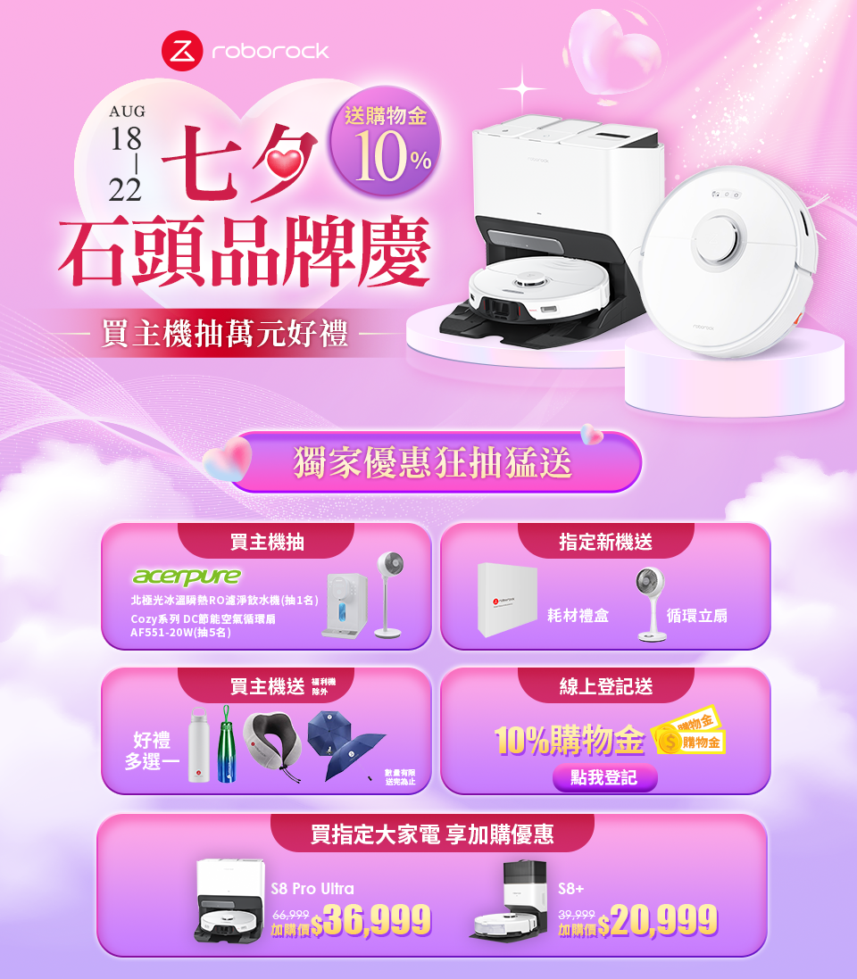 石頭 S8+專用耗材禮盒+石頭 Roborock品牌後背包+獨家送★好禮多選一
