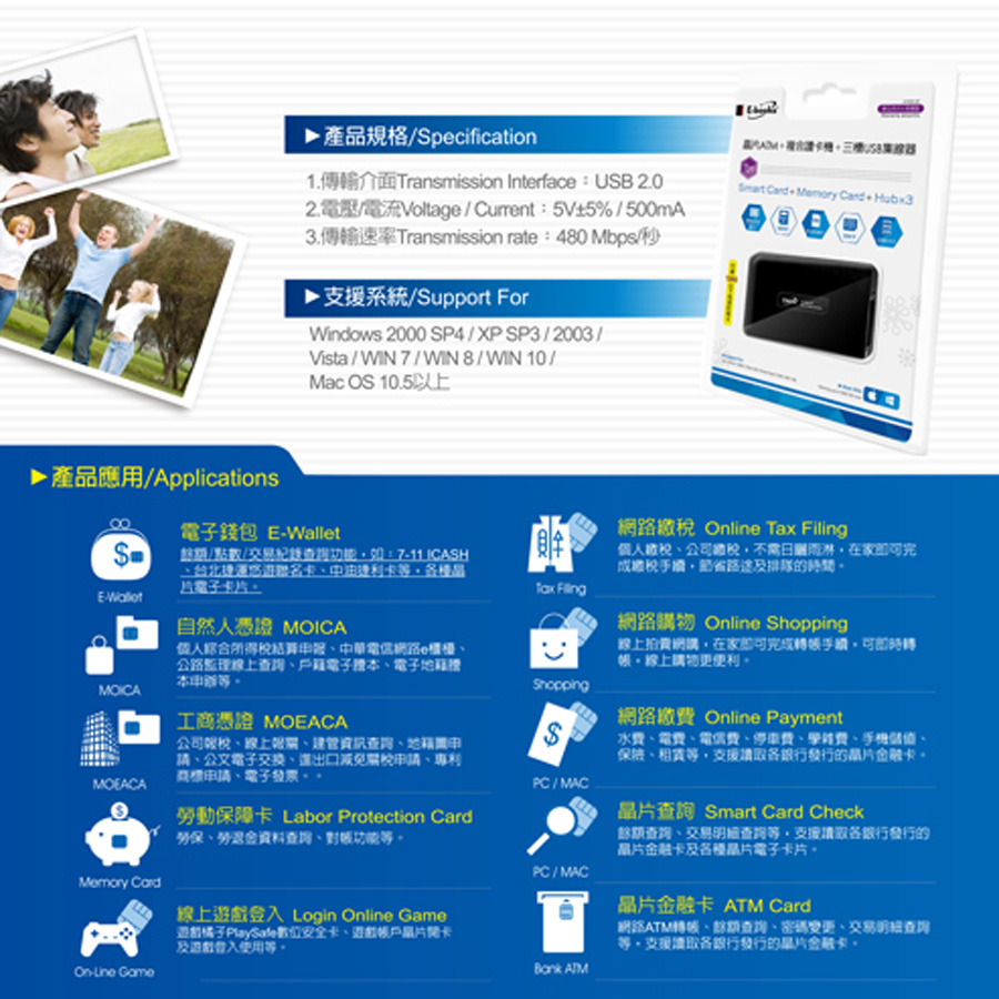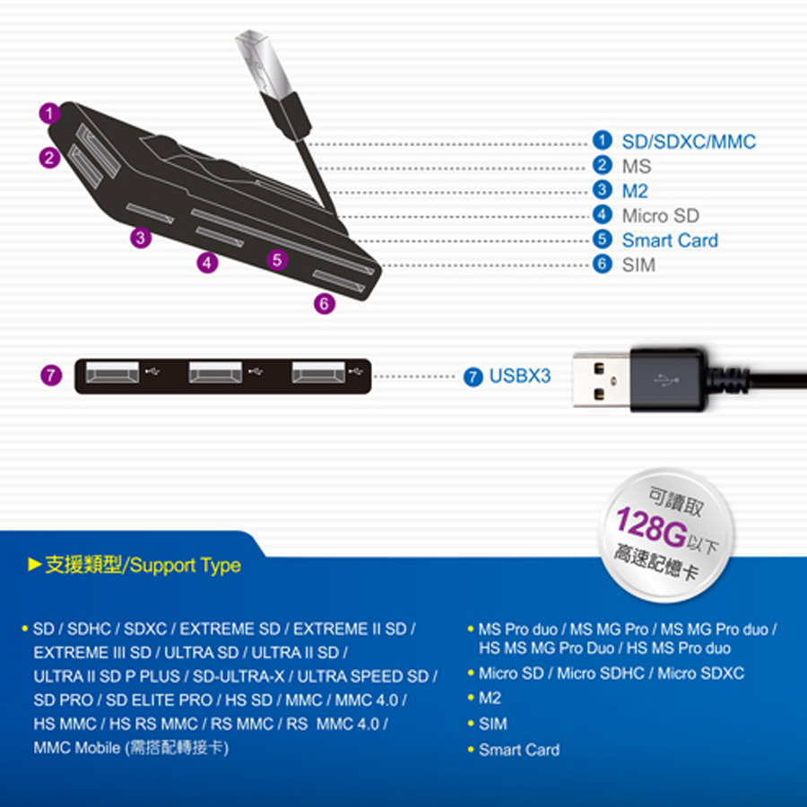 E-books T29晶片複合式讀卡機+USB