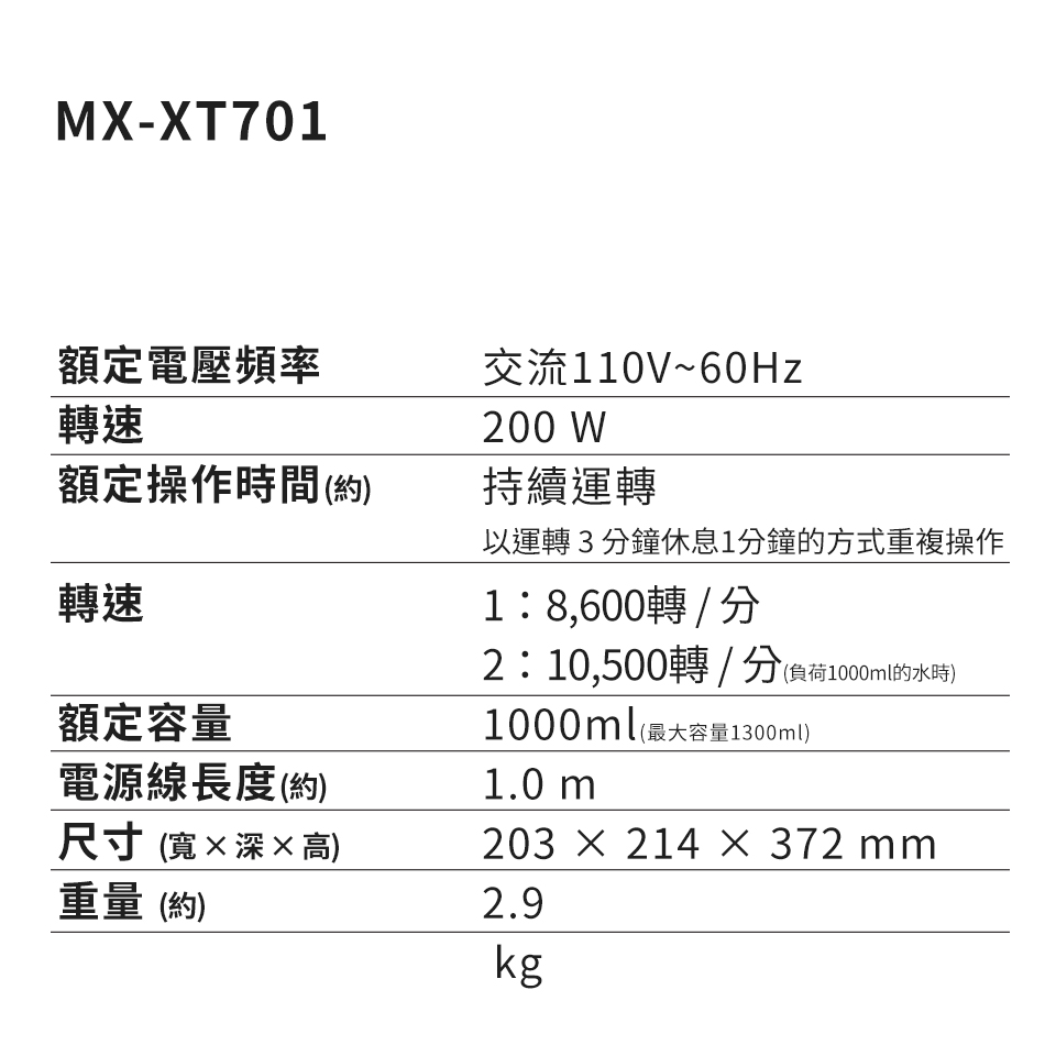 產品型號:MX-XT701