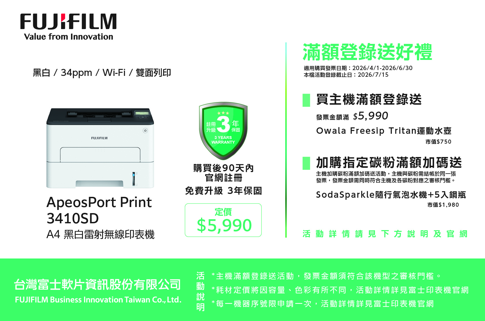 FUJIFILM ApeosPort Print 3410SD 黑白雷射無線印表機