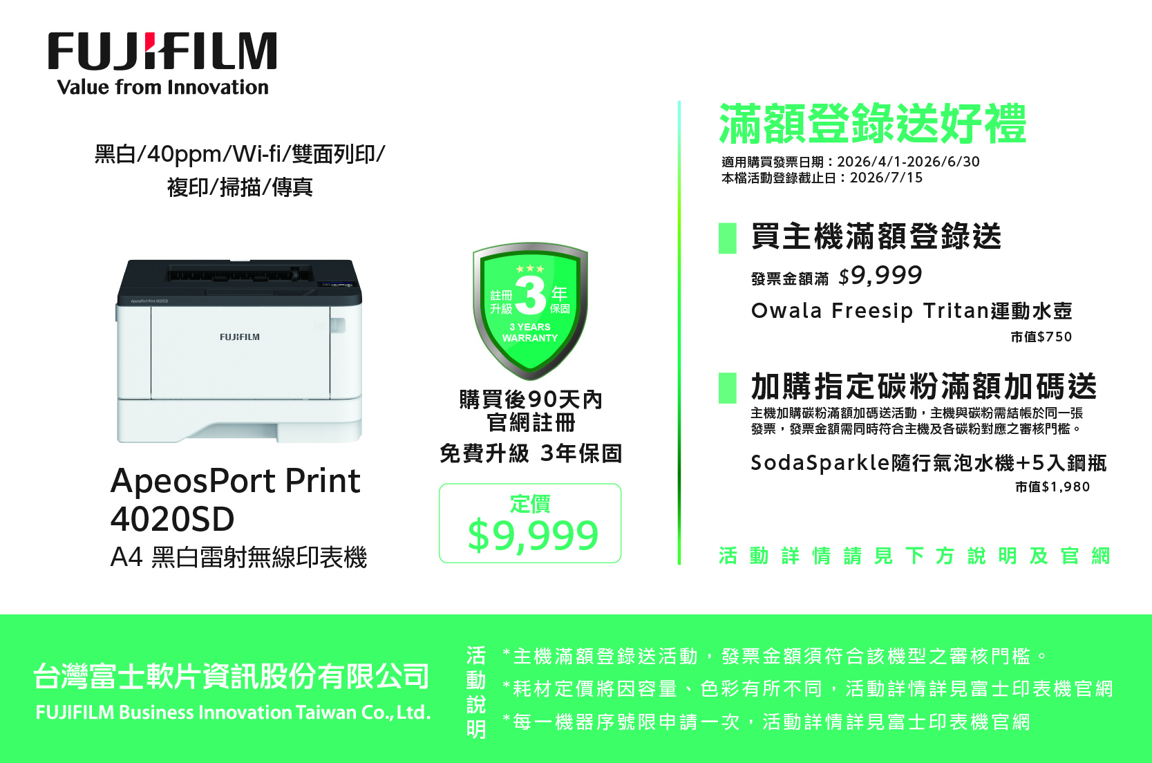 FUJIFILM ApeosPort Print 4020SD 黑白雷射無線印表機