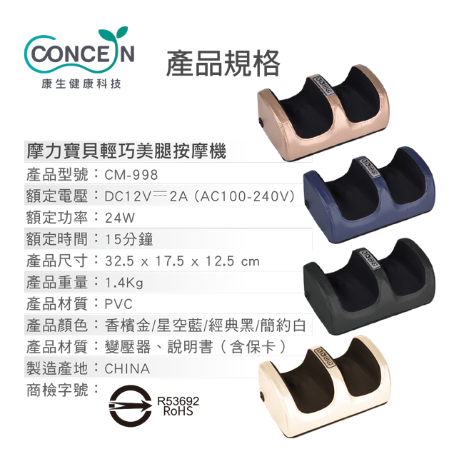 康生 摩力寶貝輕巧美腿按摩機 白