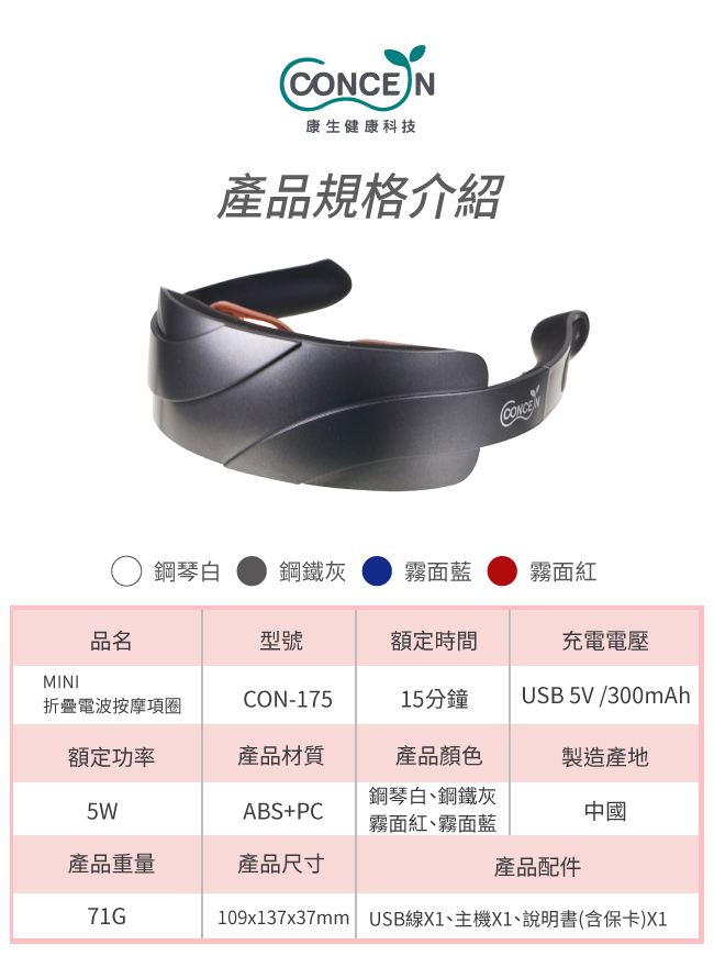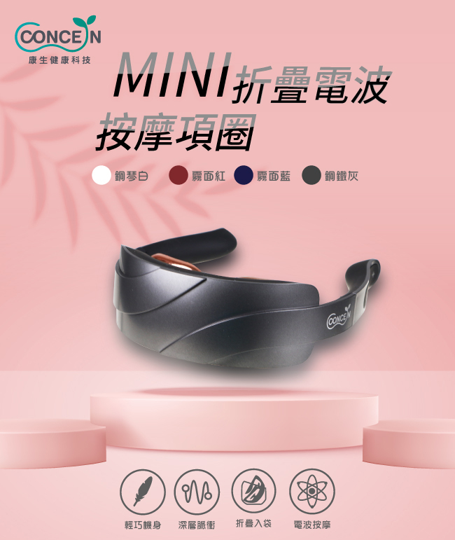 康生 MINI折疊電波按摩項圈灰