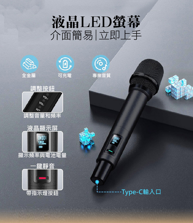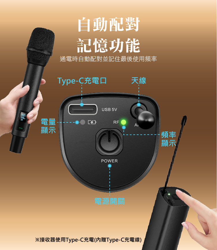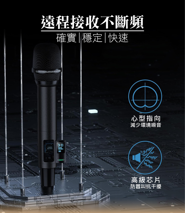 • 麥克風即插即用,超高靈敏度UHF特高頻頻率