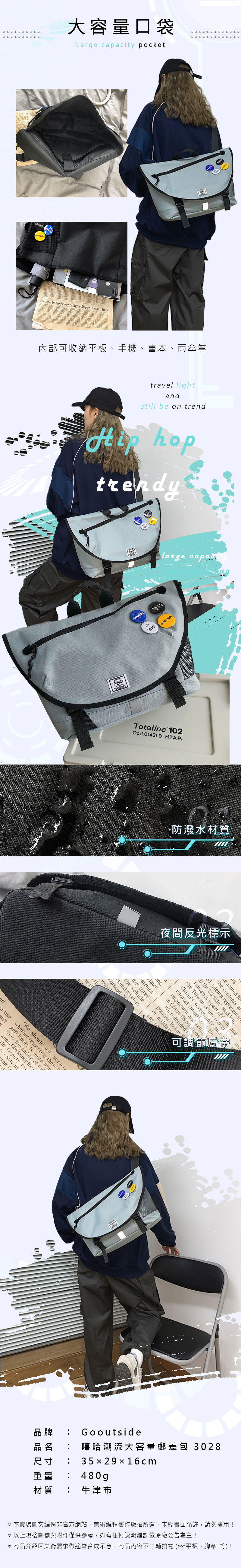 Gooutside 嘻哈潮流大容量郵差包 (公司貨)