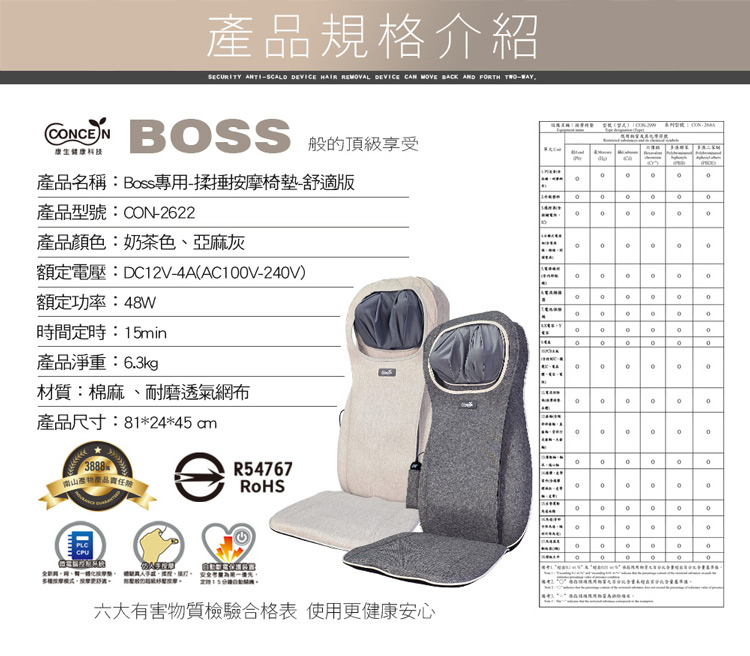 康生 揉捶按摩椅墊-灰 - 主要圖片