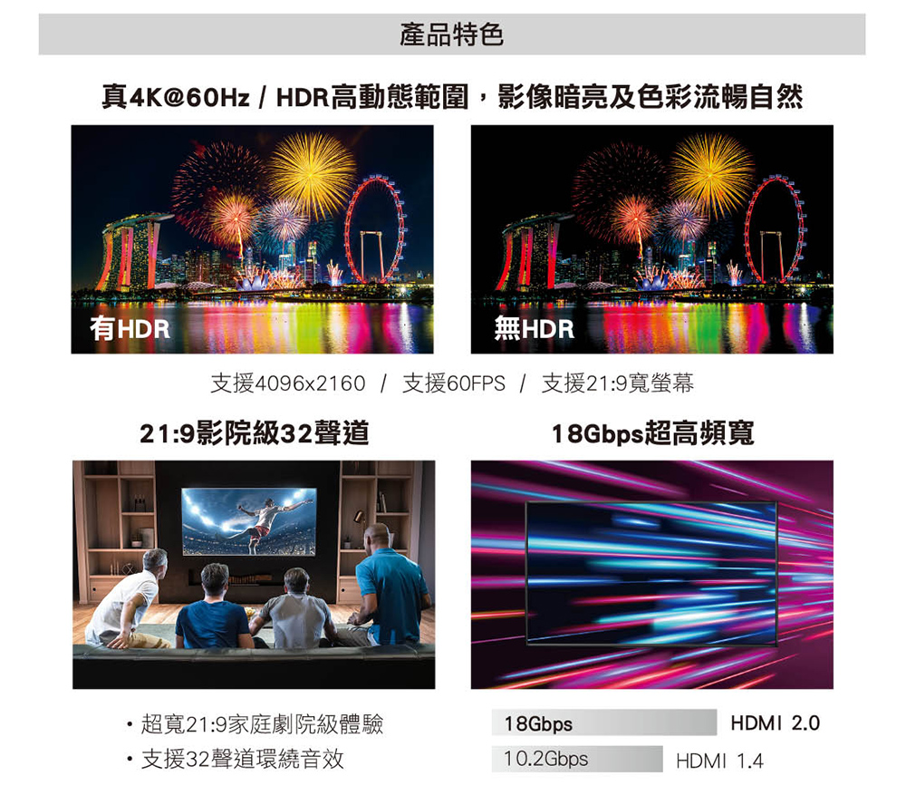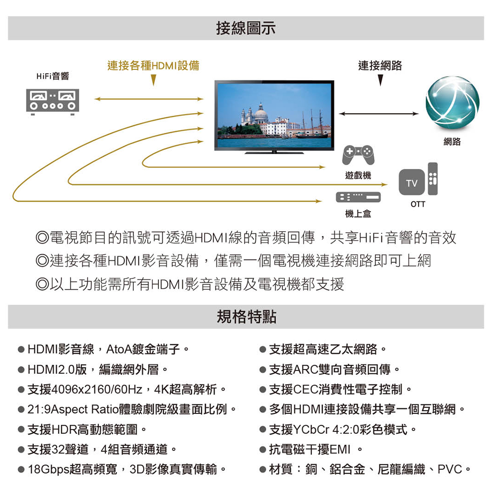 Townward HDMI 2.0版4K編織影音線 1.5M