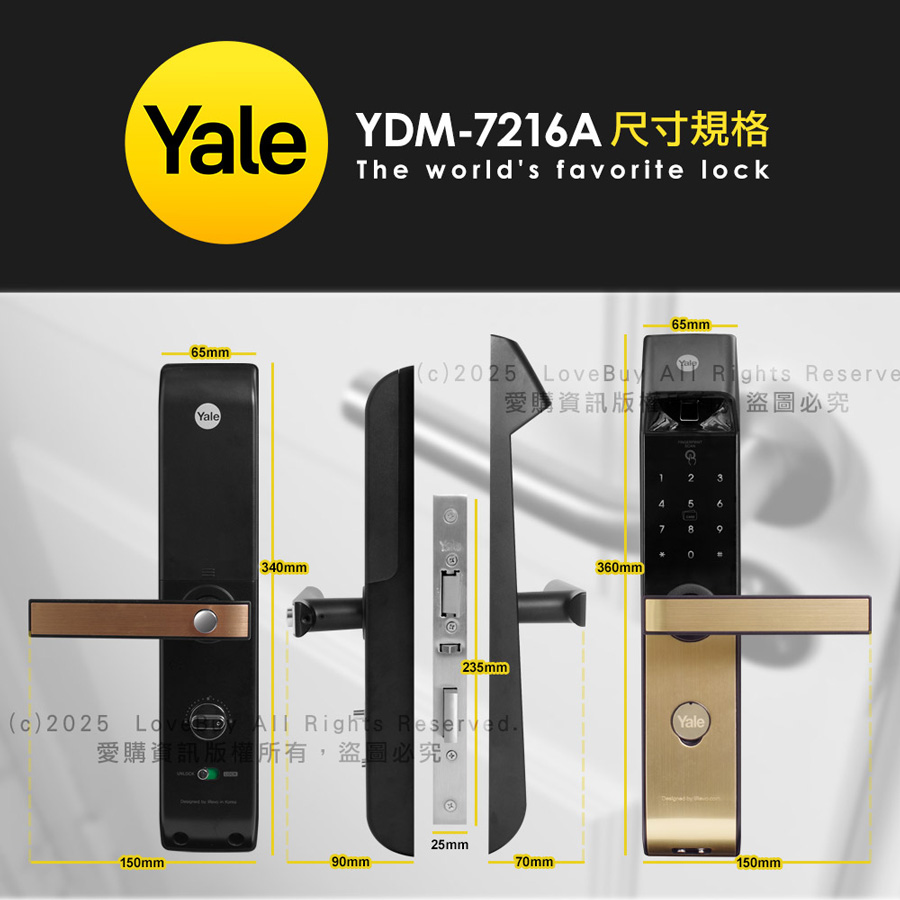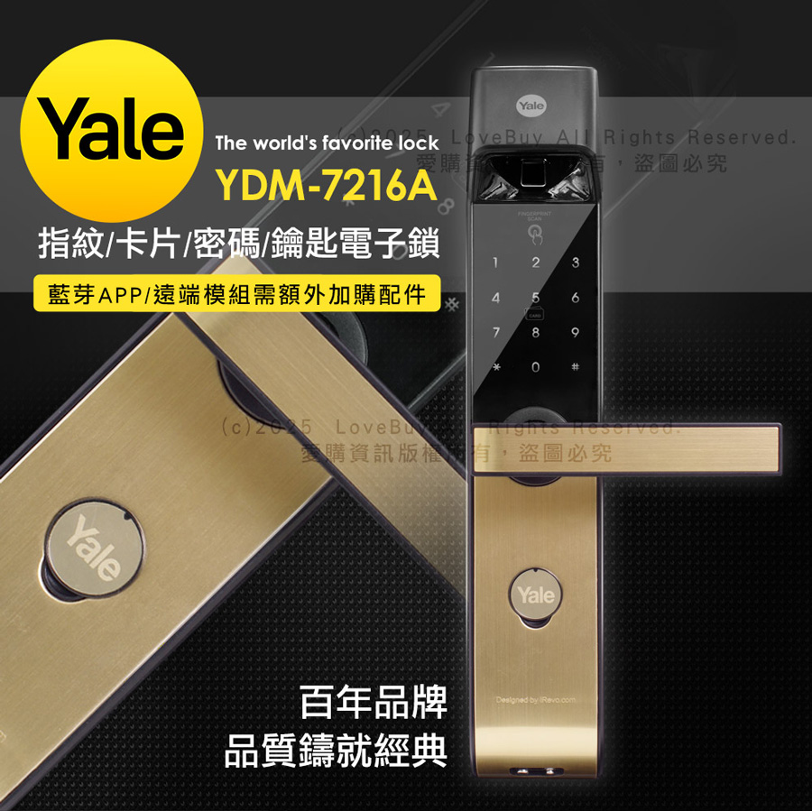 ◆商品:【Yale 耶魯】卡片/密碼/鑰匙/電容式指紋智能電子鎖/門鎖(YDM-7216A升級款)(附基本安裝)