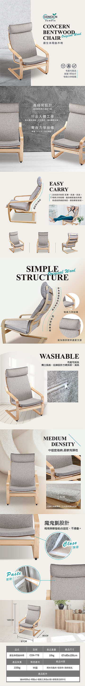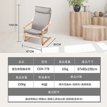 康生 休閒曲木椅 - 主要圖片
