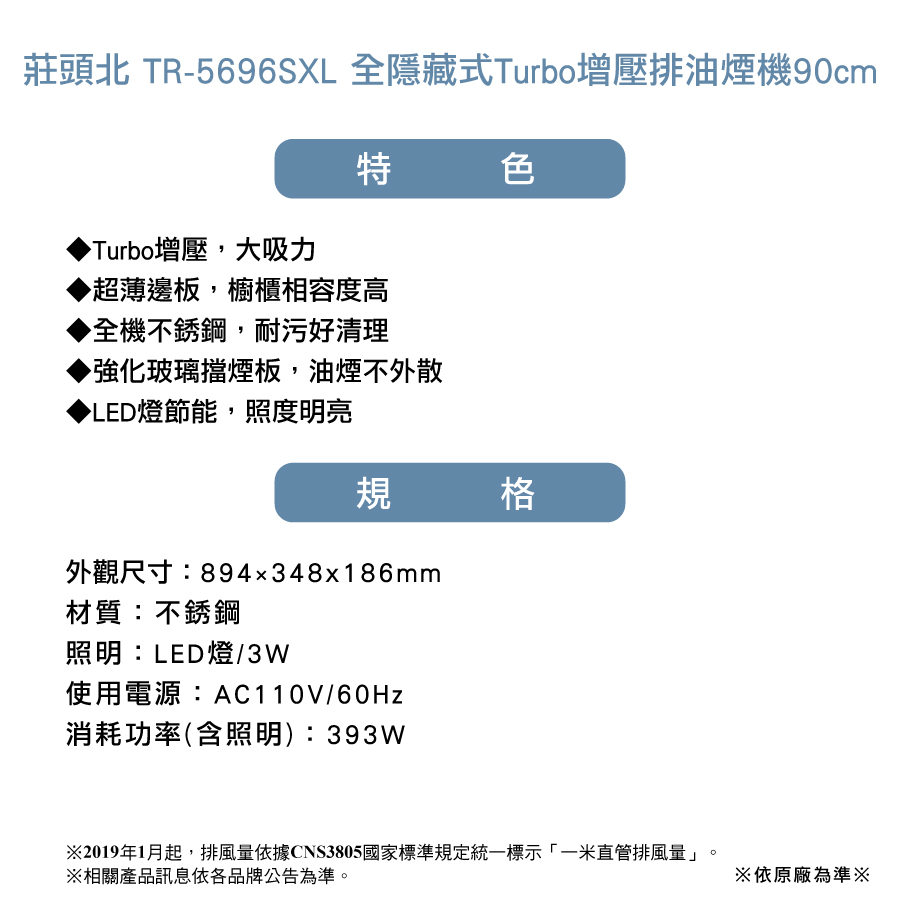 莊頭北 TR-5696SXL全隱藏式排油煙機90cm