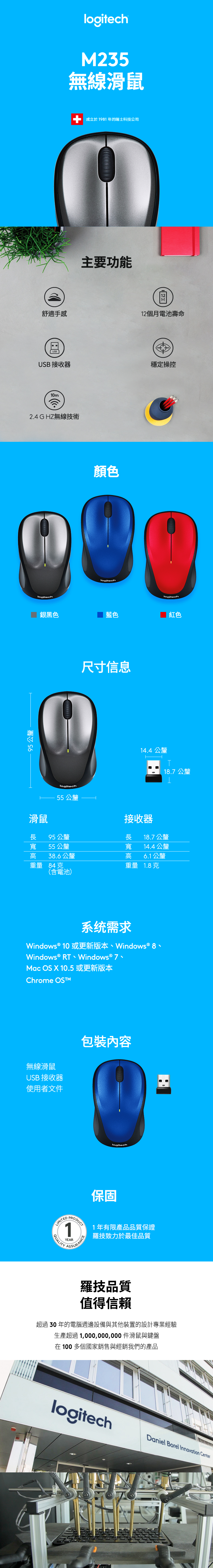 羅技 Logitech M235 無線滑鼠-銀黑