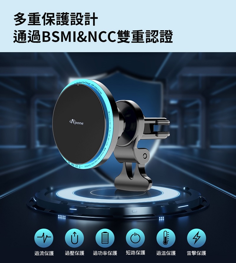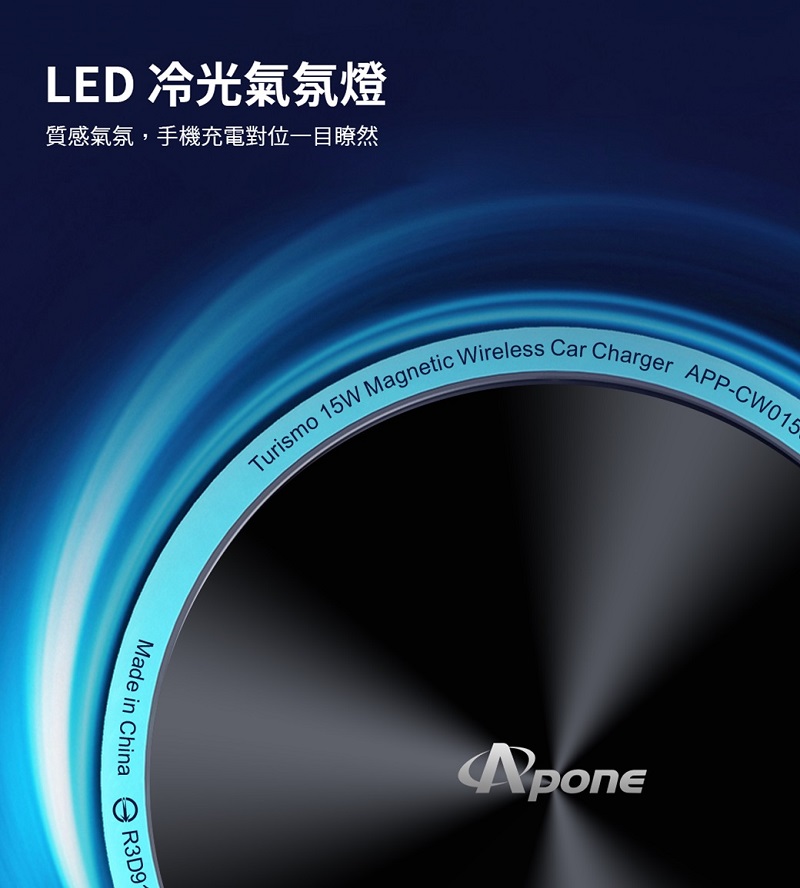 Apone Turismo360 15W車用磁吸無線充電支架 - 主要圖片