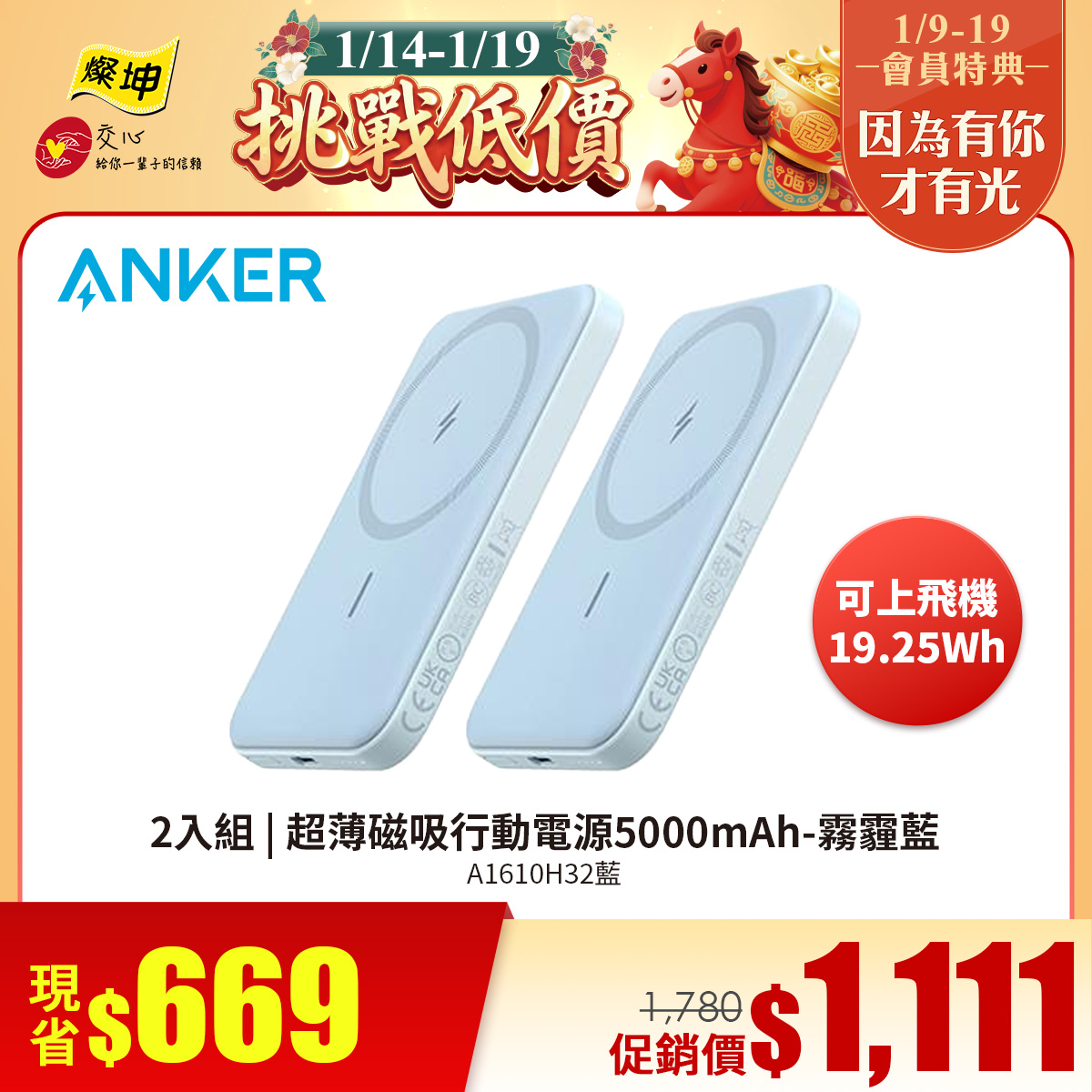 2入組 | Anker 超薄磁吸行動電源5000mAh-霧霾藍