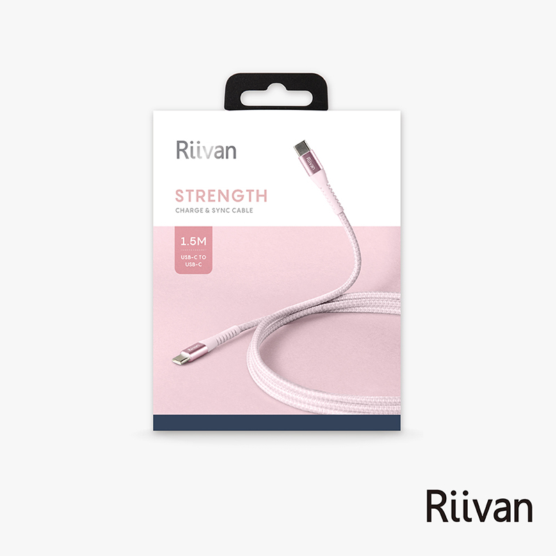 Riivan USB-C TO C 100W快充傳輸線1.5M-粉