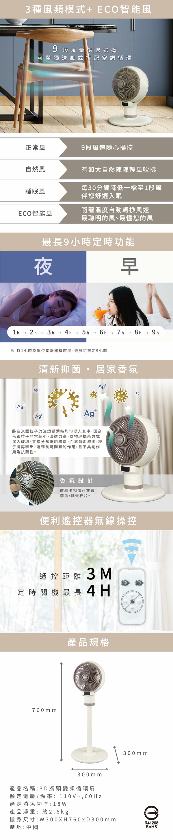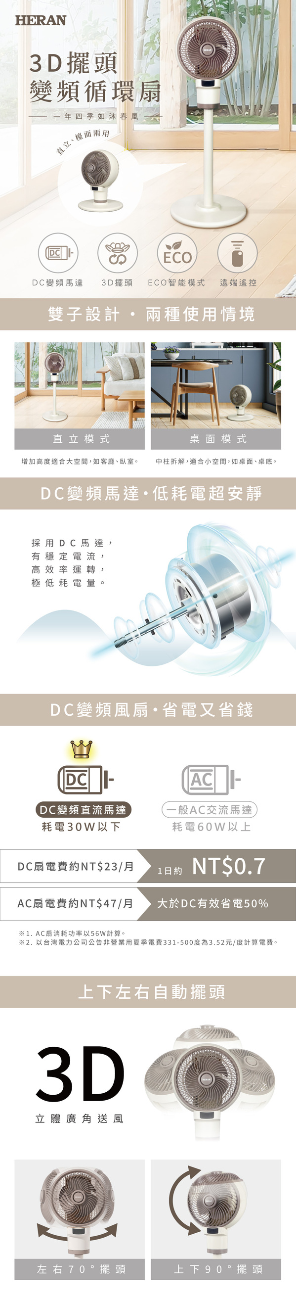 禾聯 HERAN 9吋3D擺頭變頻DC循環扇