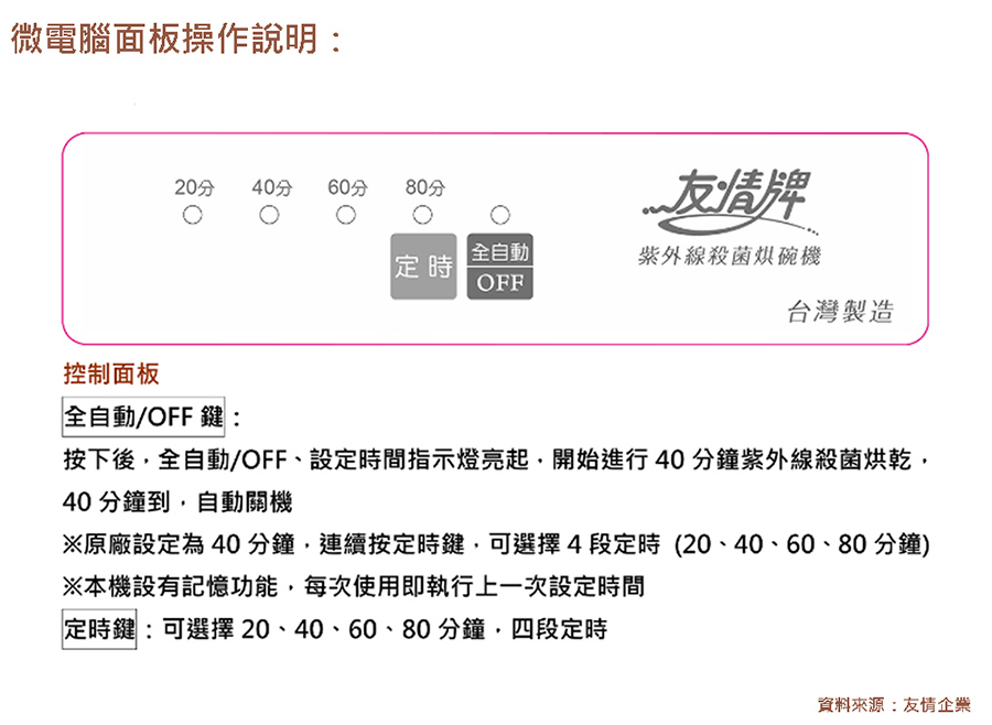 6、定時裝置:四段式微電腦觸控式(20、40、60、80分鐘)