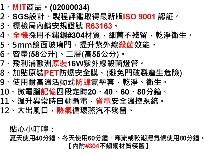 貼心小叮嚀: 夏天使用40分鐘、冬天使用60分鐘、寒流或較潮濕氣候使用80分鐘