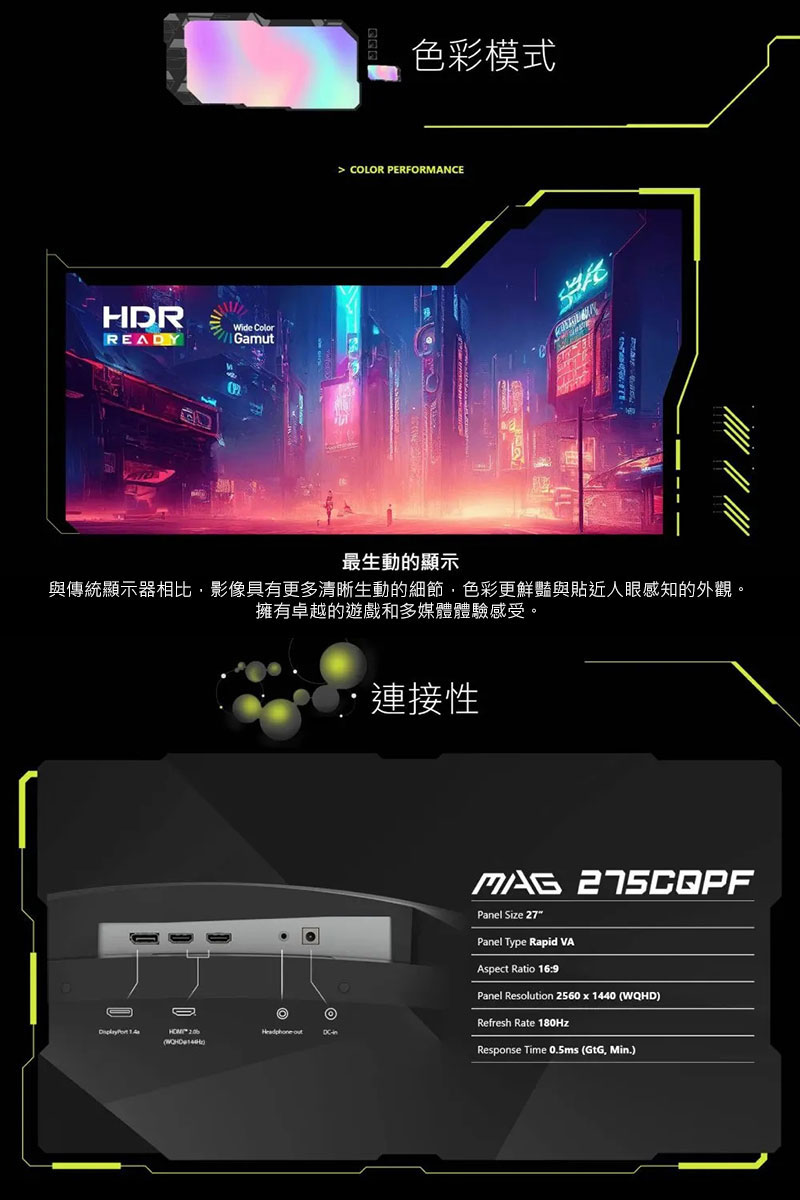 ●備註:DisplayPort: 2560 x 1440 (Up to 180Hz)