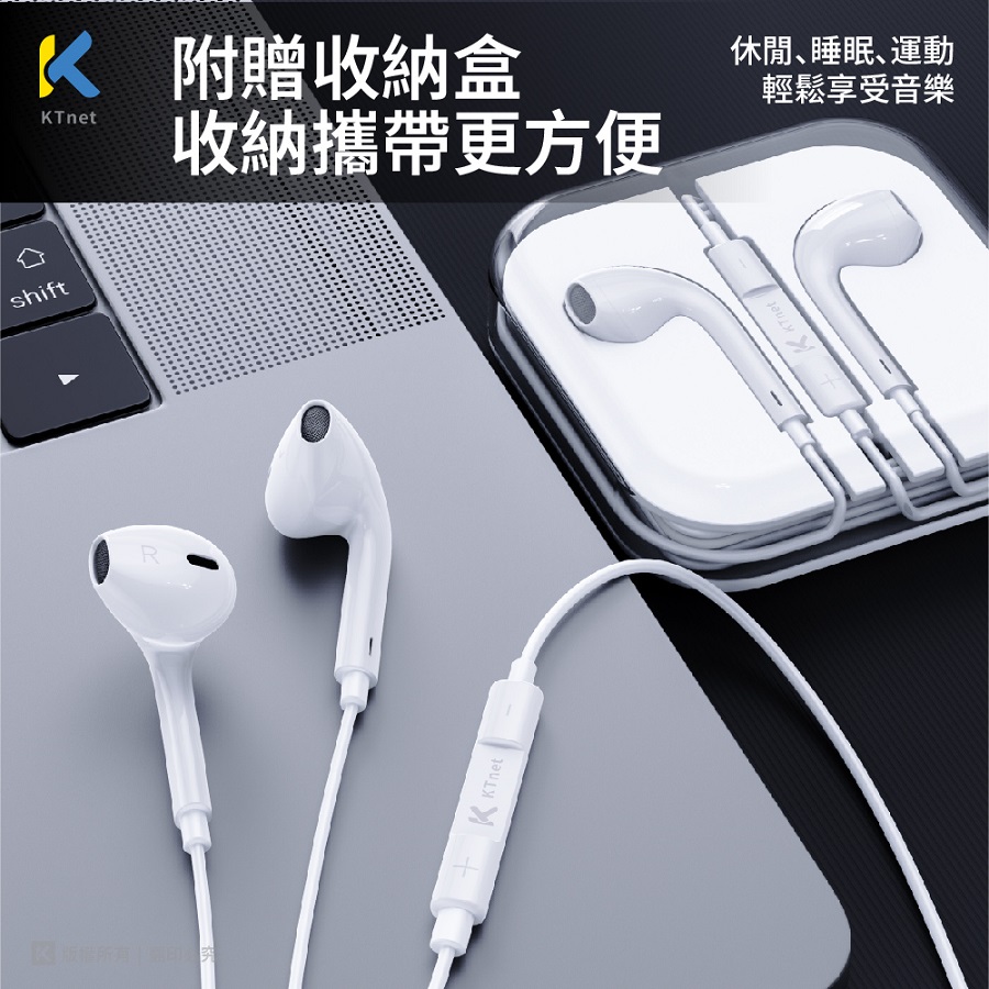 KTnet EA1四極插入耳式線控耳機-白 - 主要圖片
