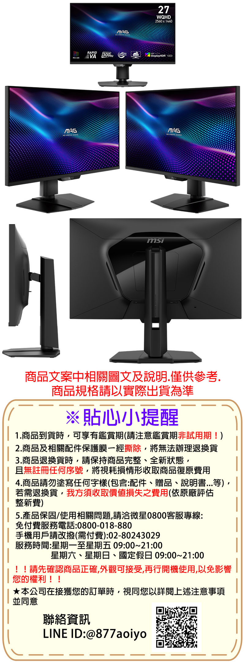 2. 商品文案為原廠(廠商)所提供,商品網頁圖片因拍攝與螢幕解析等原因,圖片的顏色顯示會有些許差異,實際情況以廠商出貨為主。