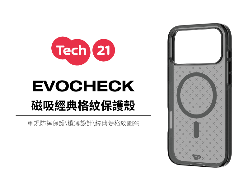Tech21 i17 Pro Max 經典格紋磁吸殼-煙燻黑