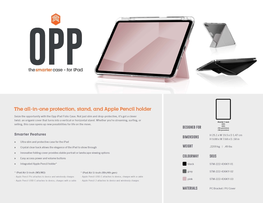 STM iPad Air 11吋 OPP多折式保護殼-黑
