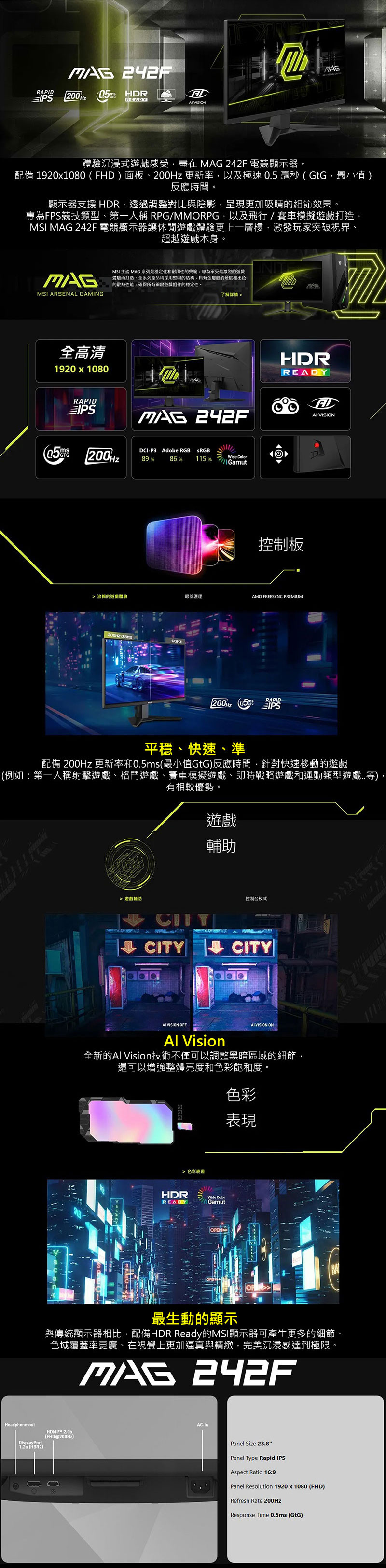 ●備註:HDMI™: 1920 x 1080 (Up to 200Hz)