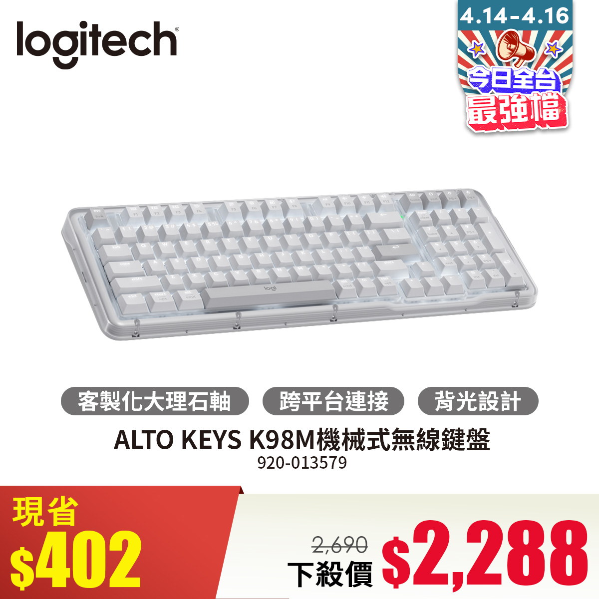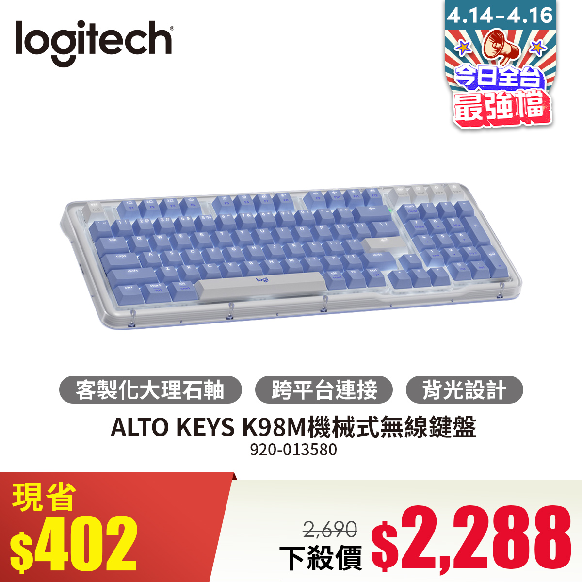 羅技 Logitech ALTO KEYS K98M機械式無線鍵盤-夢幻紫