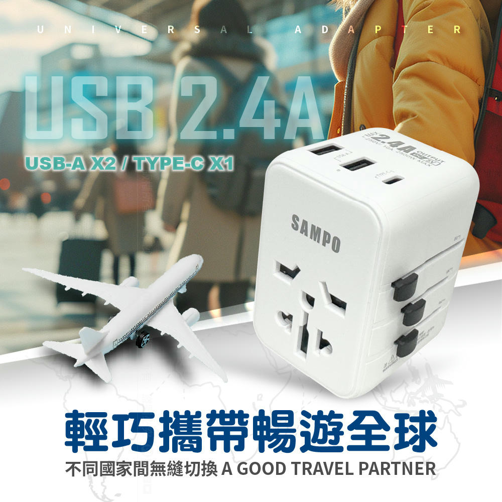 SAMPO 2U1C 旅行萬用轉接座-全球通用型