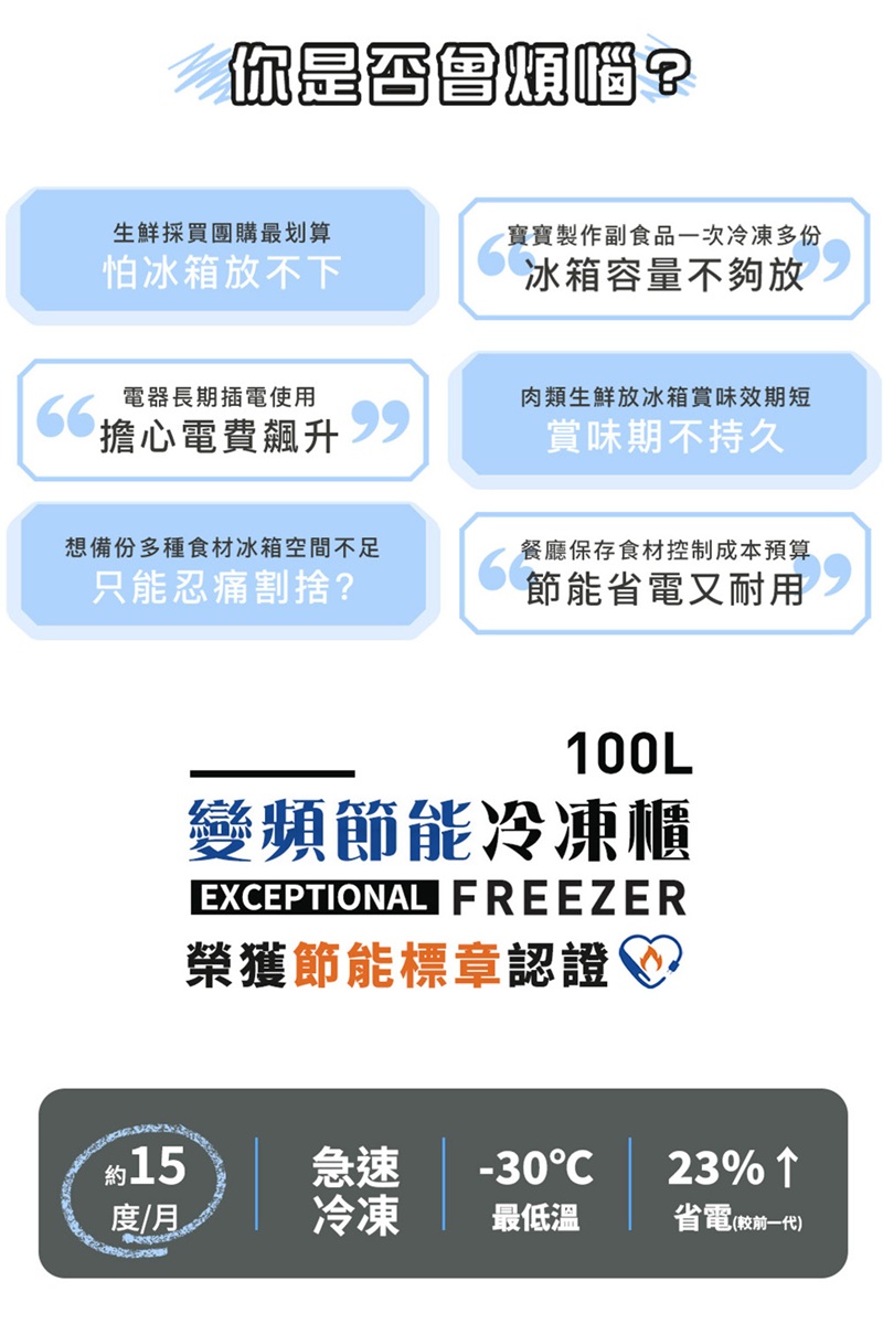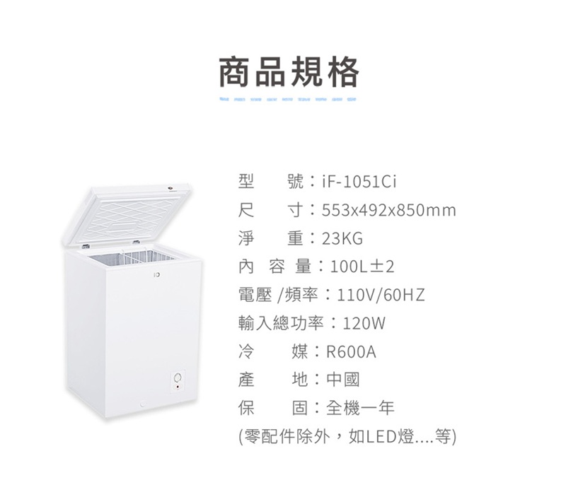 iO變頻節能臥式100公升冷凍櫃iF1051Ci
