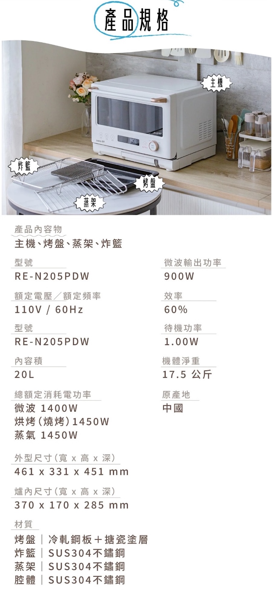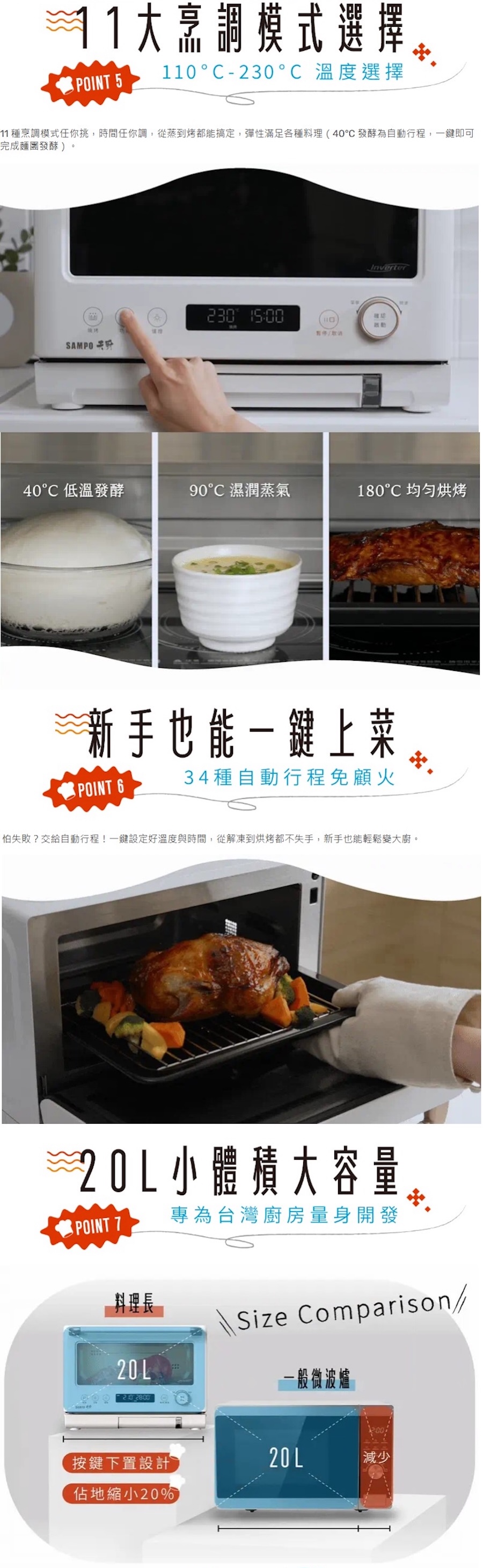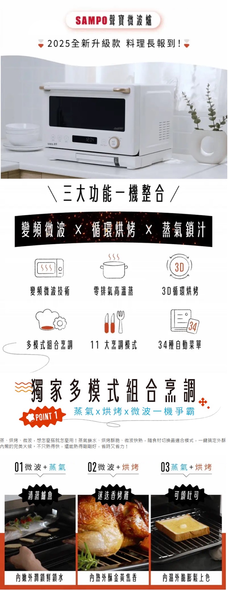 聲寶 SAMPO 天廚20L變頻蒸烘烤微波爐