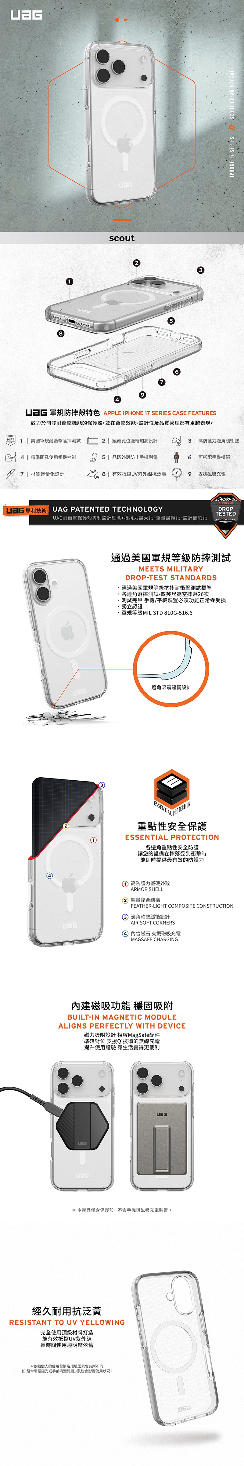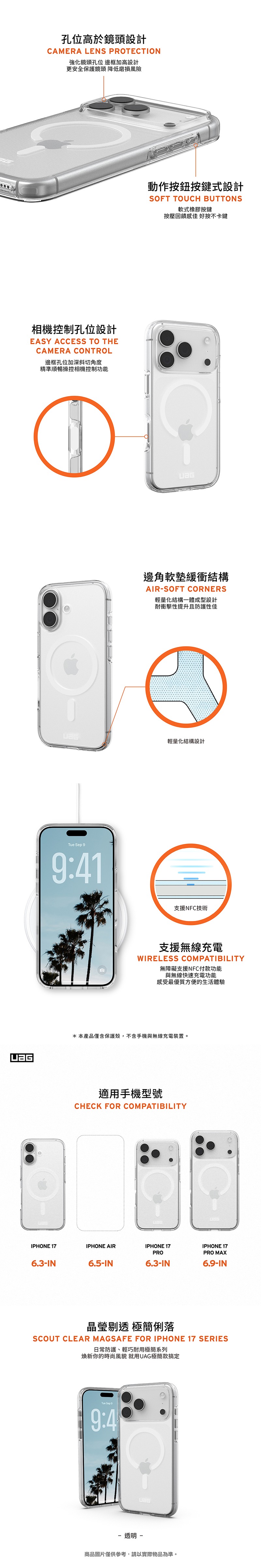 UAG i17 Pro 磁吸耐衝擊極簡保護殼-透明
