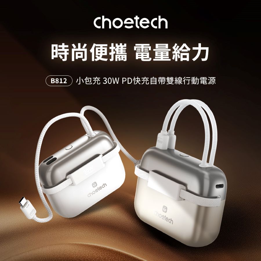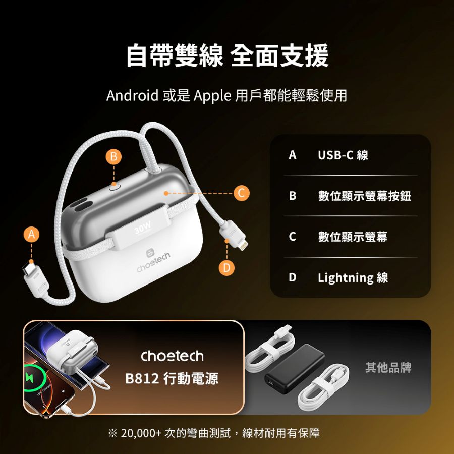 Choetech B812 30W帶線行動電源10000mAh-銀