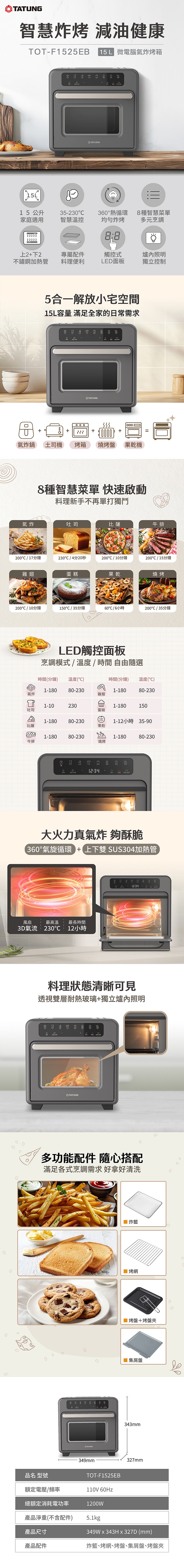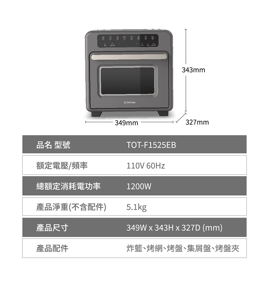 大同 15L微電腦氣炸烤箱