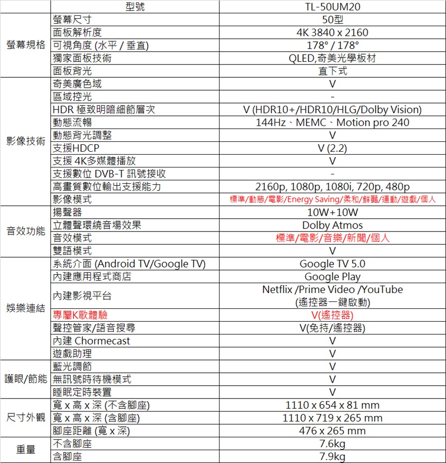 奇美 CHIMEI 50型QLED 4K Google顯示器
