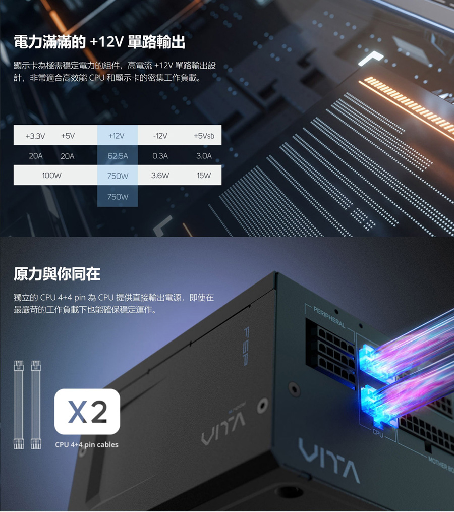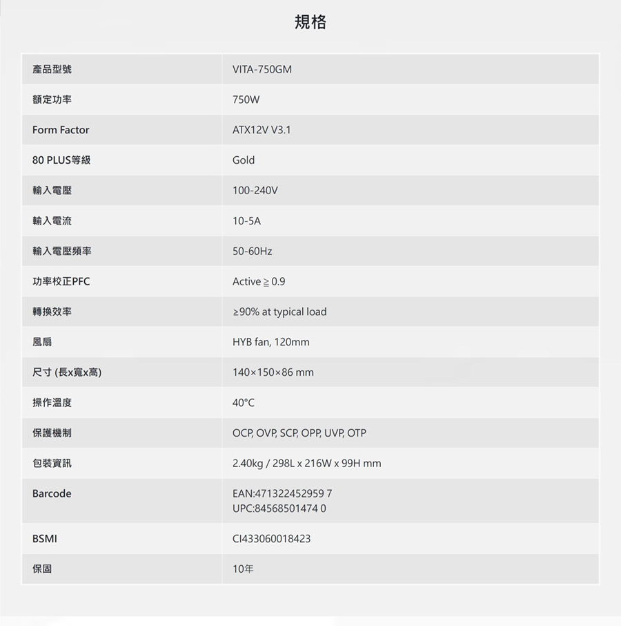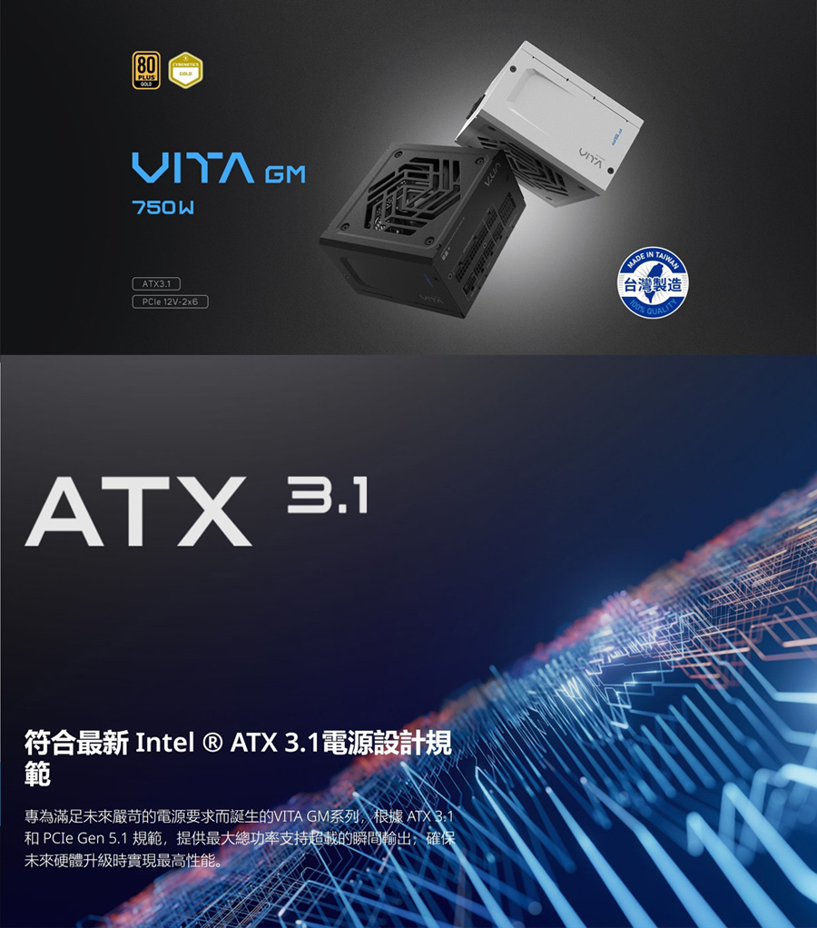 全漢 VITA GM MIT 750W 金牌電源供應器(黑)