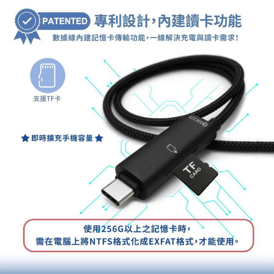 Wephone USB-C to L專利TF讀卡PD快充數據線