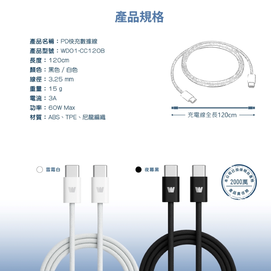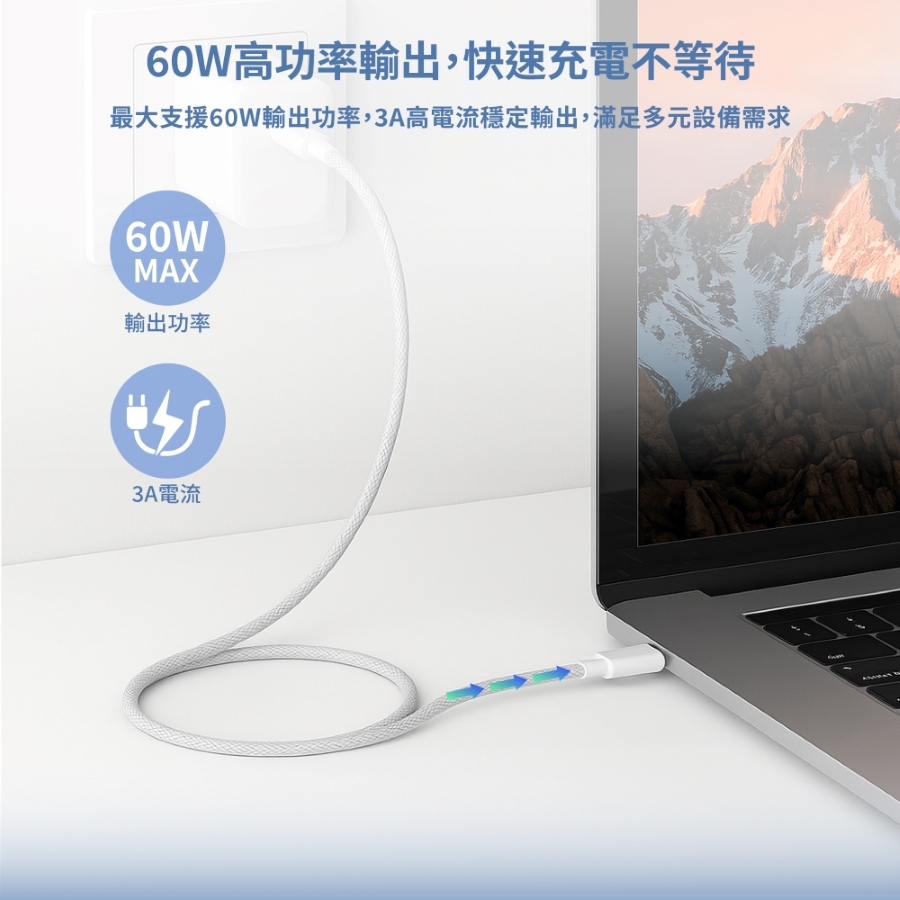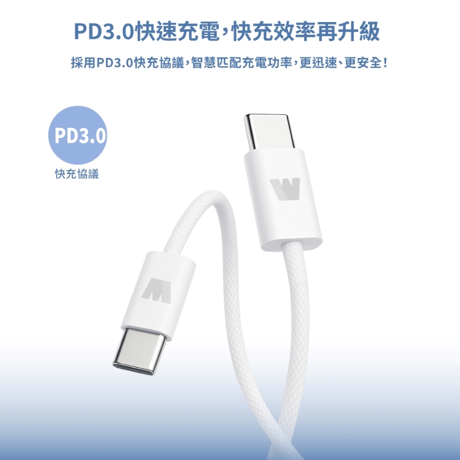 Wephone 60W PD快充數據線1.2M-白色 - 主要圖片
