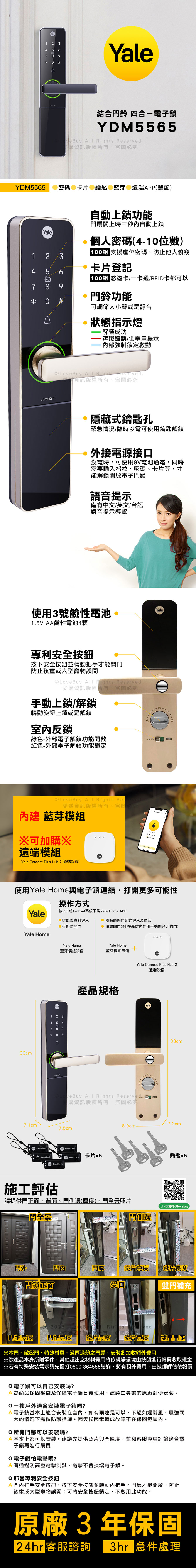 Yale 耶魯YDM5565四合一智能電子鎖(香檳金)