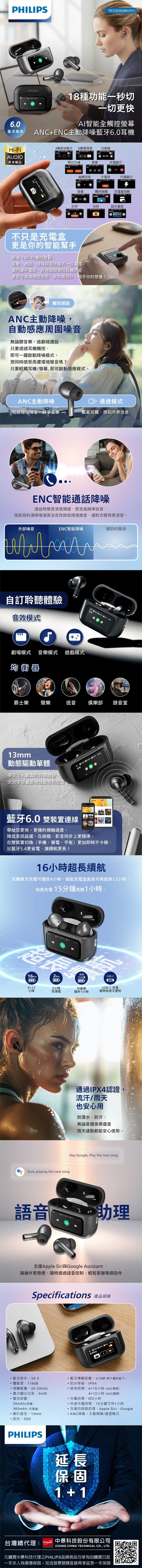 • ANC 主動降噪+感應模式,沉浸或環境聲一指切換