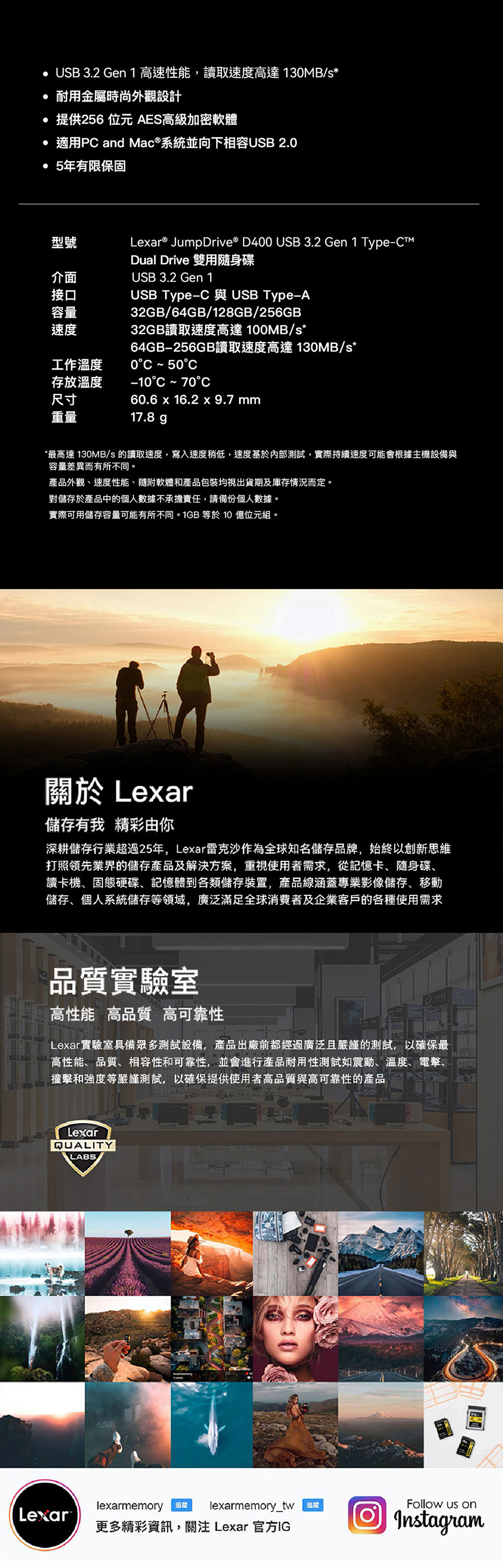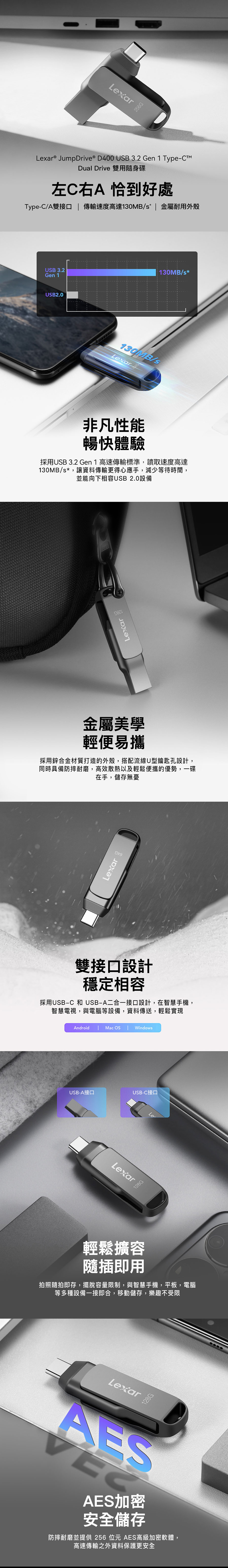 Lexar 雷克沙 D400 128GB Type-C雙頭隨身碟