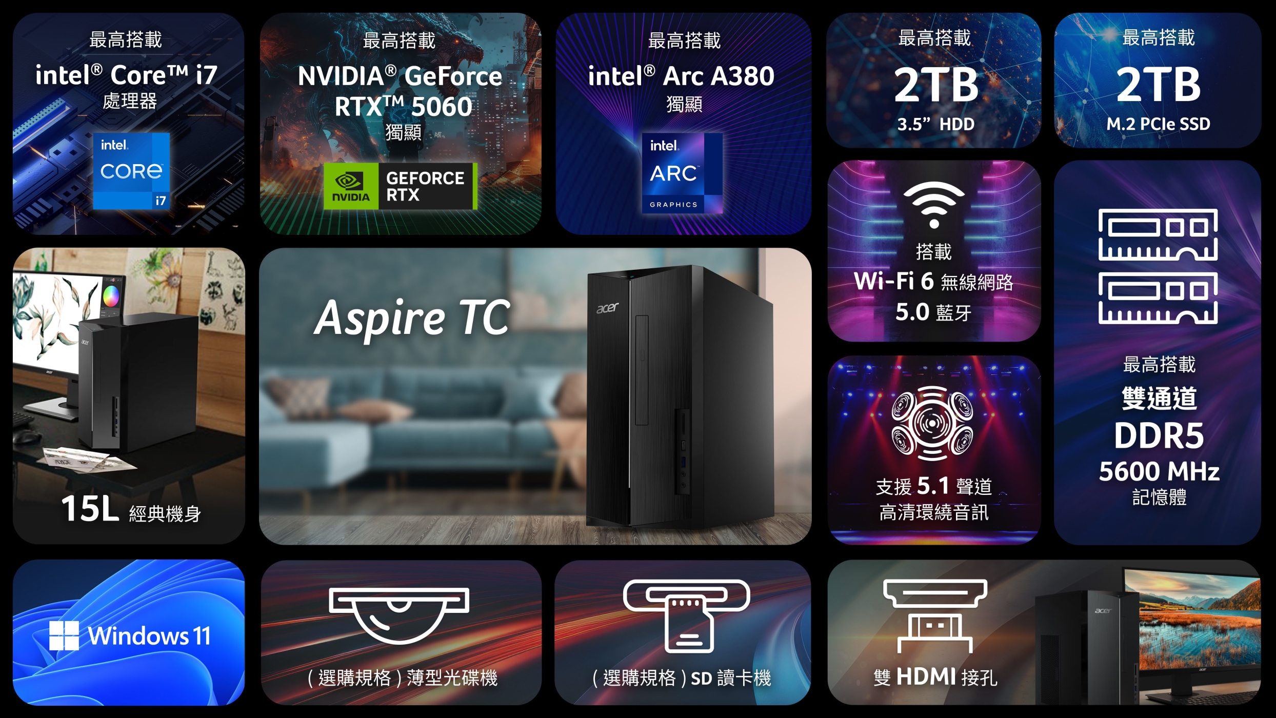 宏碁 ACER Aspire TC-1785 AI桌機 (i3-13400F/8G/512G/RTX3050-6G/W11) 黑