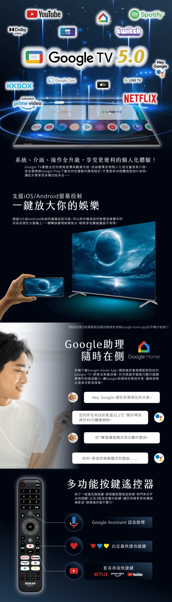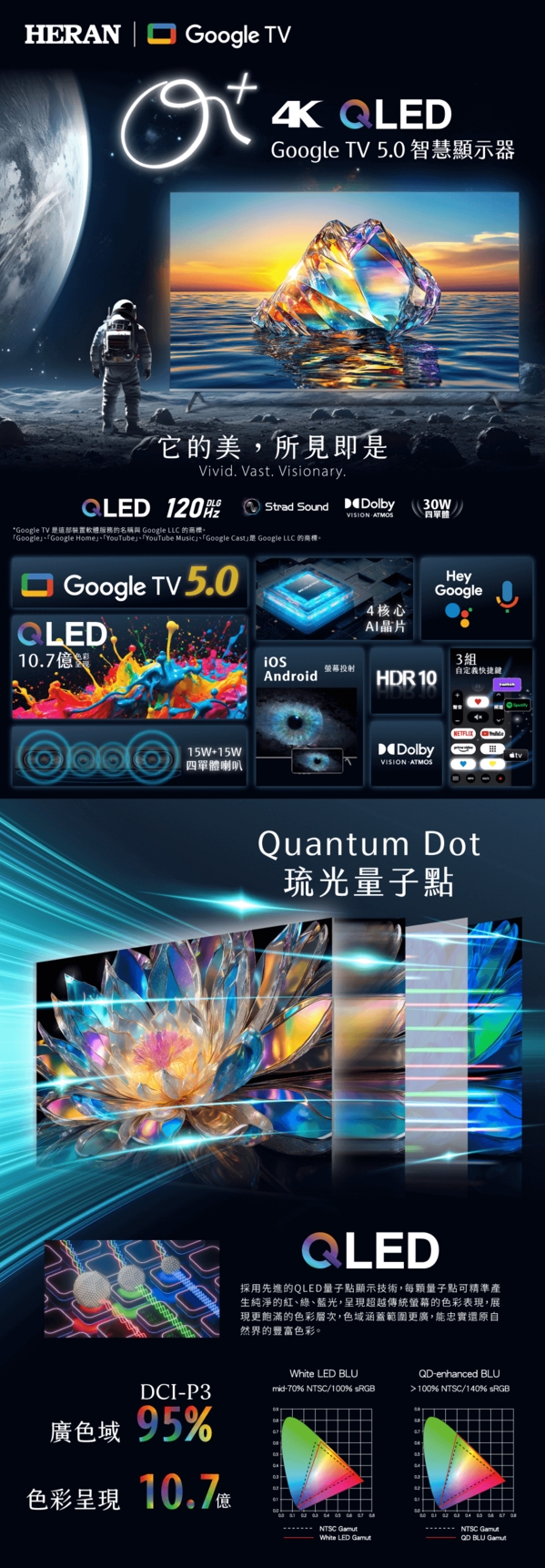 HERAN禾聯55型4K QLED量子點聯網液晶顯示器