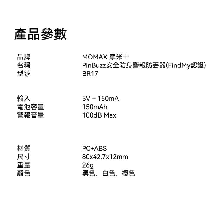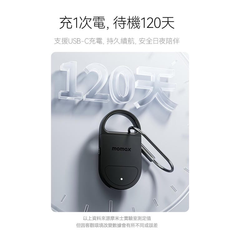 Momax 防盜個人警報器Find My全球防丟器-黑