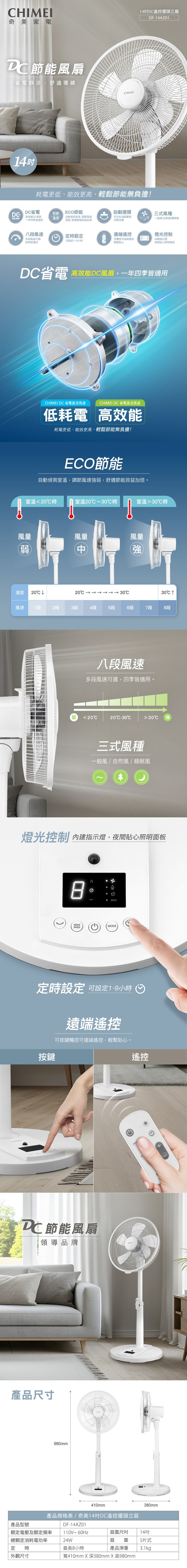 奇美 CHIMEI 14" DC馬達ECO遙控擺頭立扇