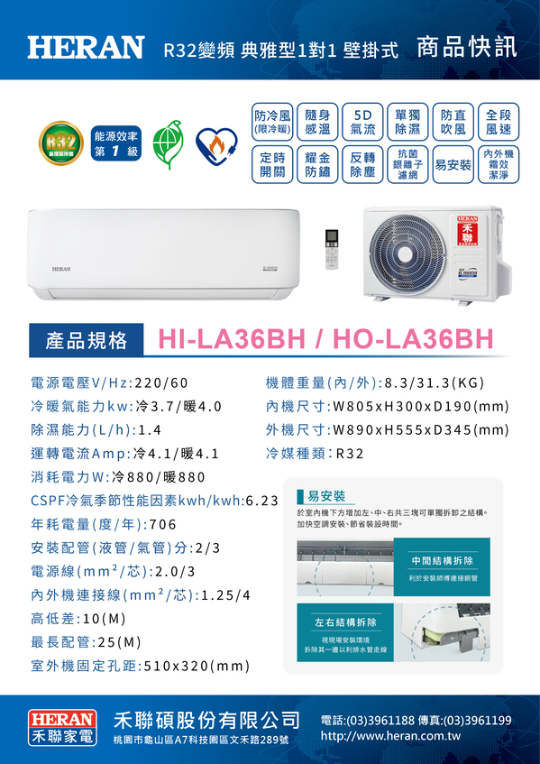 HERAN 典雅型一對一變頻冷暖空調