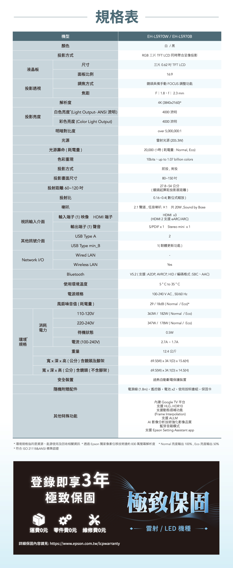 • 白色/彩色亮度皆高達4,000流明