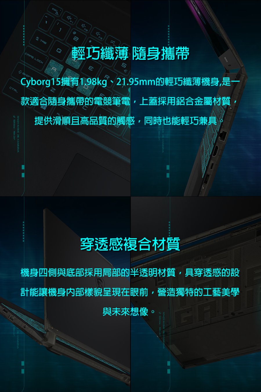 微星 MSI Cyborg AI電競筆電 15.6" (Intel Core5-210H/16G/512G/RTX3050-6G/W11) - 細節圖 3