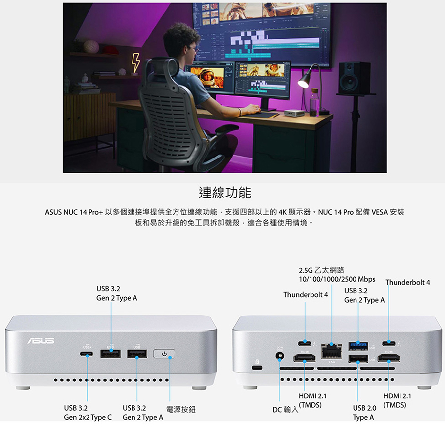 華碩 NUC 14 PRO PLUS 迷你電腦特仕版 (Ultra 7 155H/64G/2TB/W11)