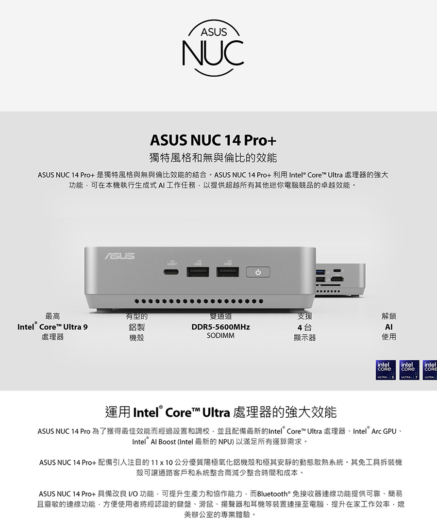 華碩 NUC 14 PRO PLUS 迷你電腦特仕版 (Ultra 7 155H/64G/2TB/W11) - 主要圖片